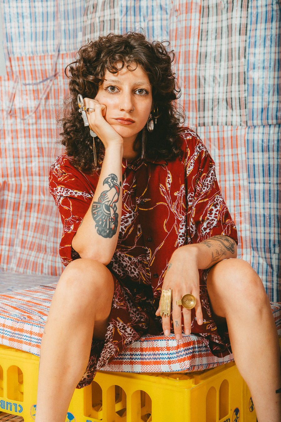 Short long conçu et cousu à Bordeaux, upcycling à partir de tissu sélectionné par l'équipe de La Blédarde. Ce collectif met en avant les musiques électroniques émergentes et traditionnelles d'Afrique du Nord et du Moyen-Orient