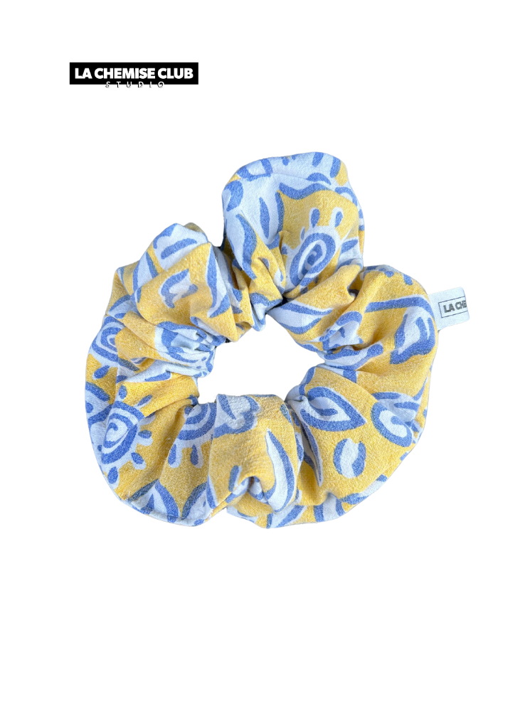 Scrunchie sewn from upcycled vintage fabric in Bordeaux