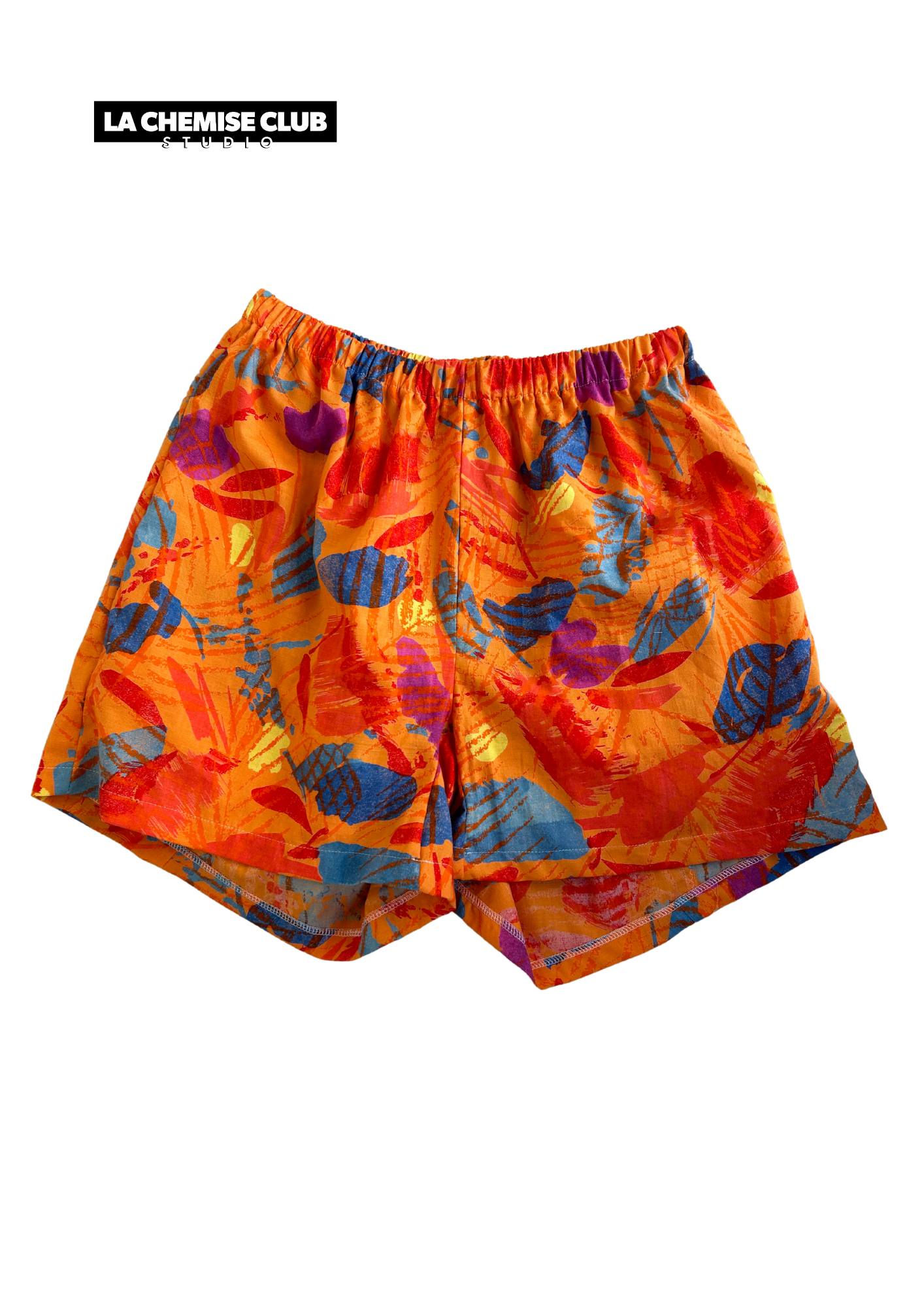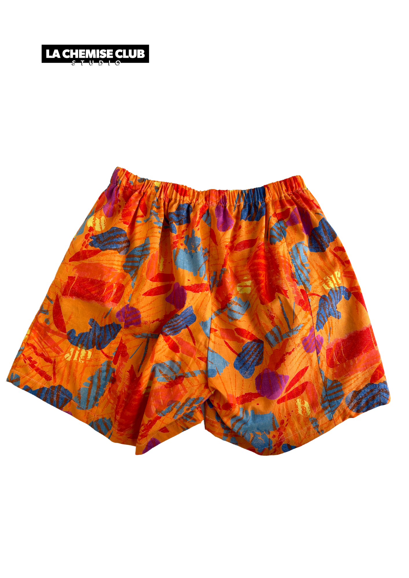 Abstract 80s 90s patterned cotton fabric on bright orange background