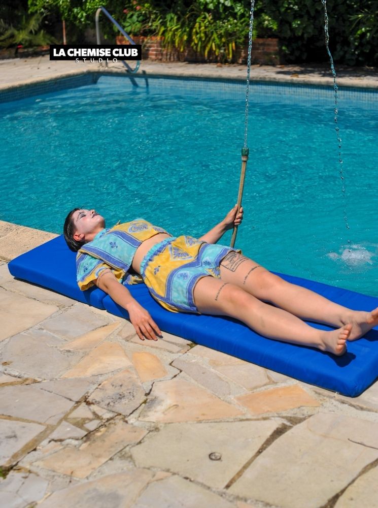 Short bermuda conçu et cousu à Bordeaux, upcycling à partir de tissu vintage