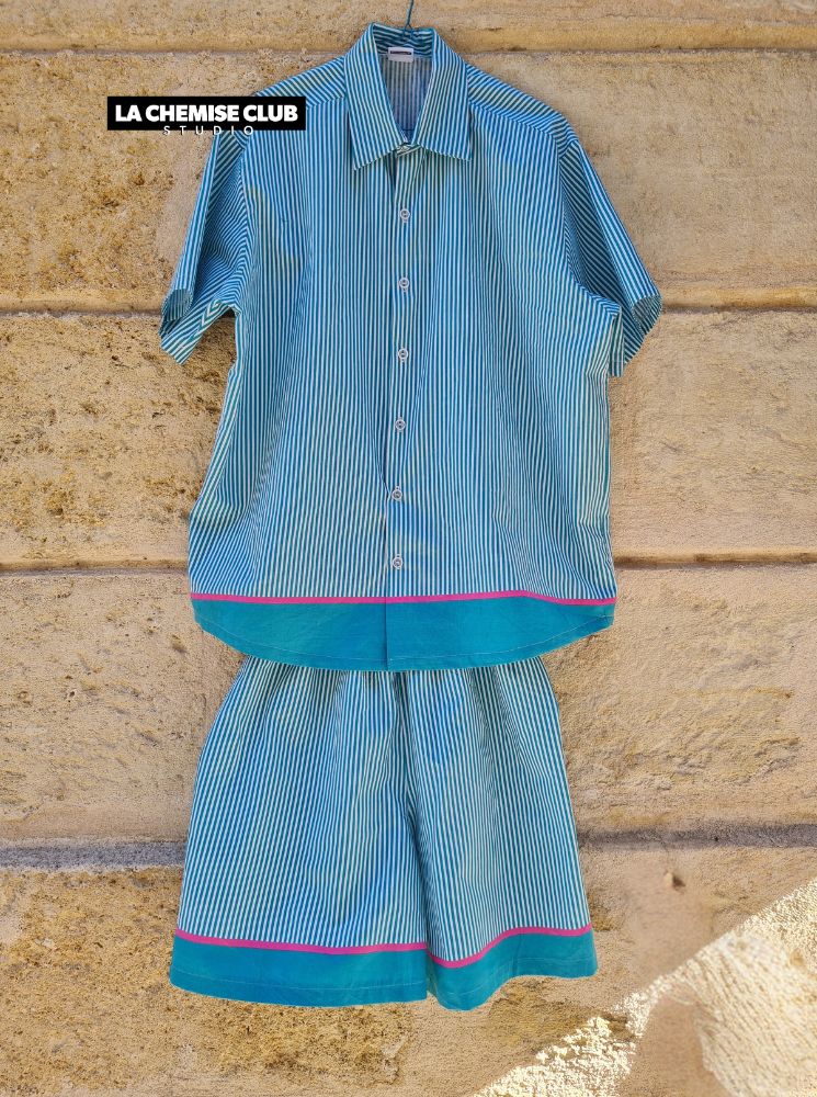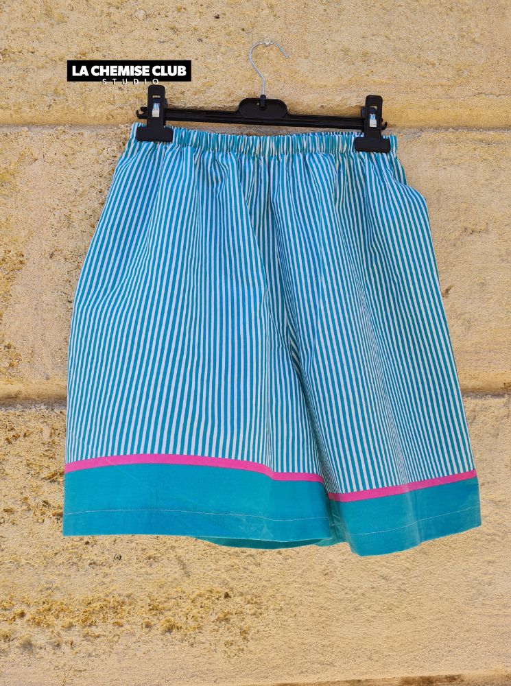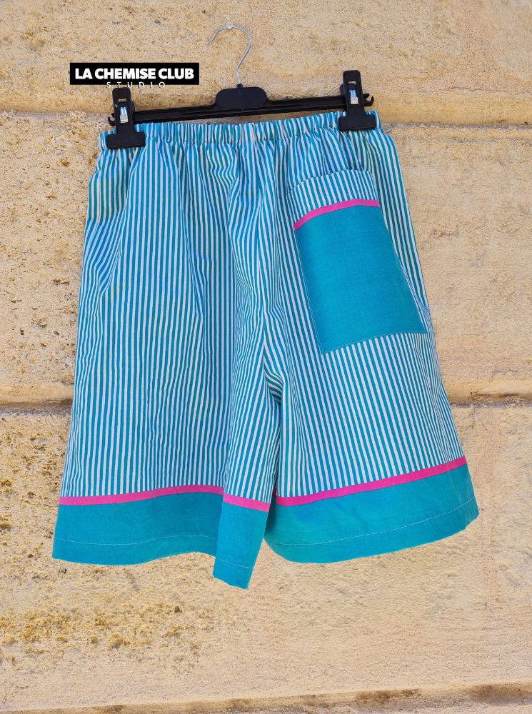 Short bermuda conçu et cousu à Bordeaux, upcycling à partir de tissu vintage