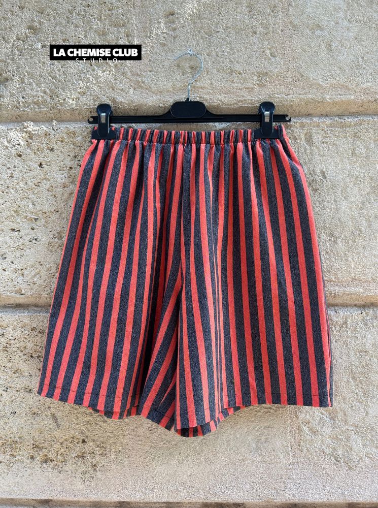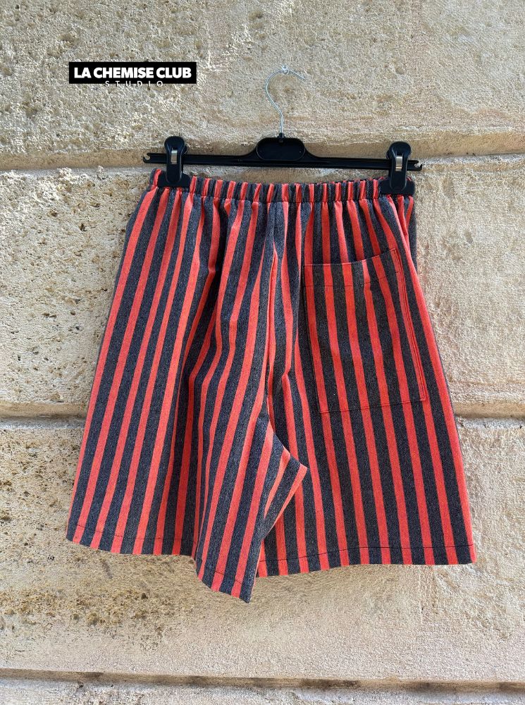Short bermuda conçu et cousu à Bordeaux, upcycling à partir de tissu vintage