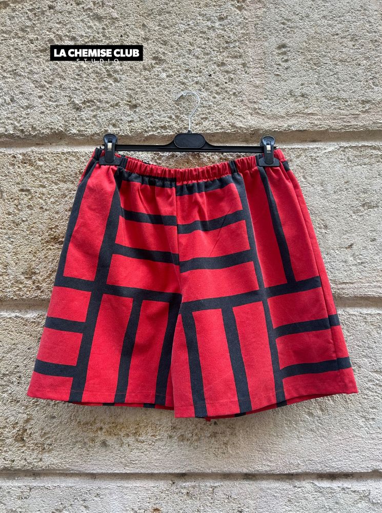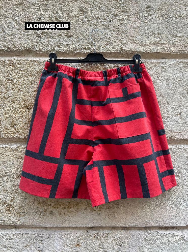 Short bermuda conçu et cousu à Bordeaux, upcycling à partir de tissu vintage