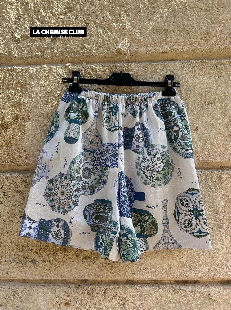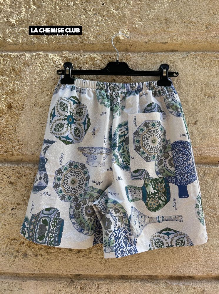 Short bermuda conçu et cousu à Bordeaux, upcycling à partir de tissu vintage