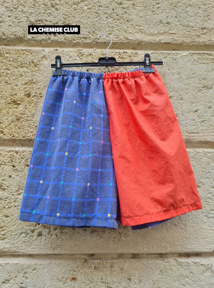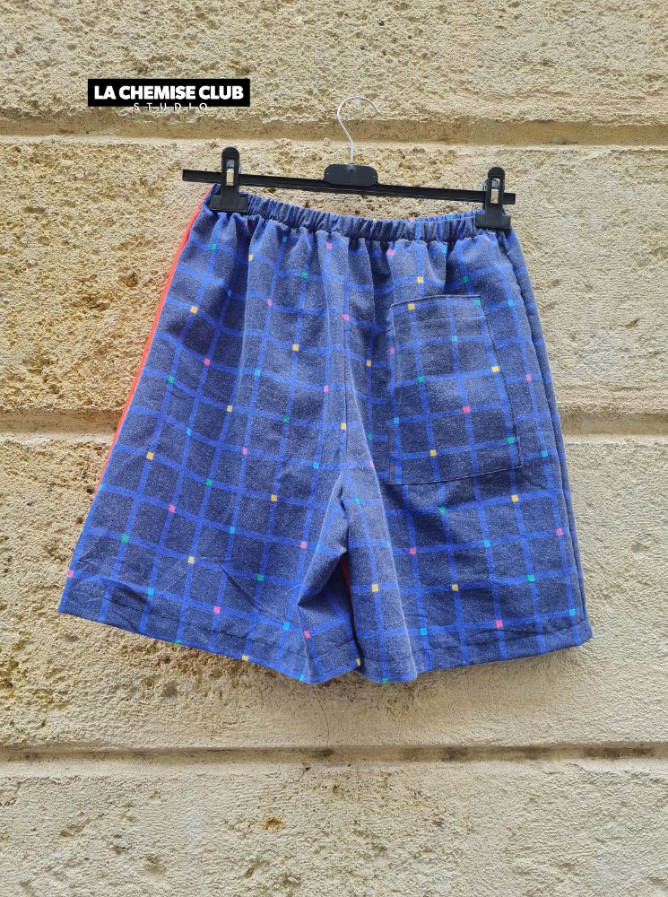 Short bermuda conçu et cousu à Bordeaux, upcycling à partir de tissu vintage