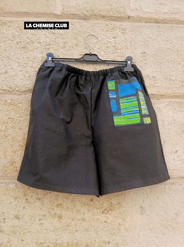 Short bermuda conçu et cousu à Bordeaux, upcycling à partir de tissu vintage