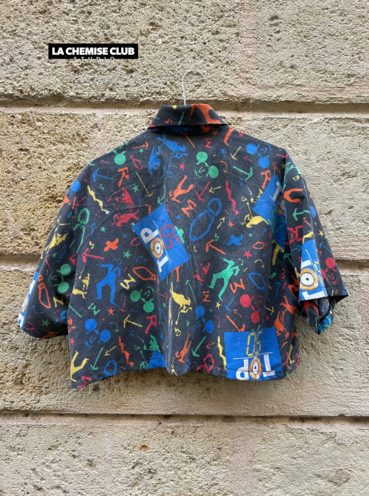 Chemise conçue et cousue à Bordeaux, upcycling à partir de tissu vintage
