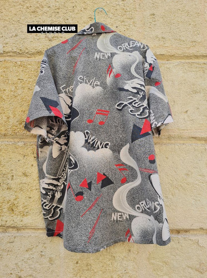 Tissu coton motif saxophoniste et notes de musique, ambiance jazz 80'