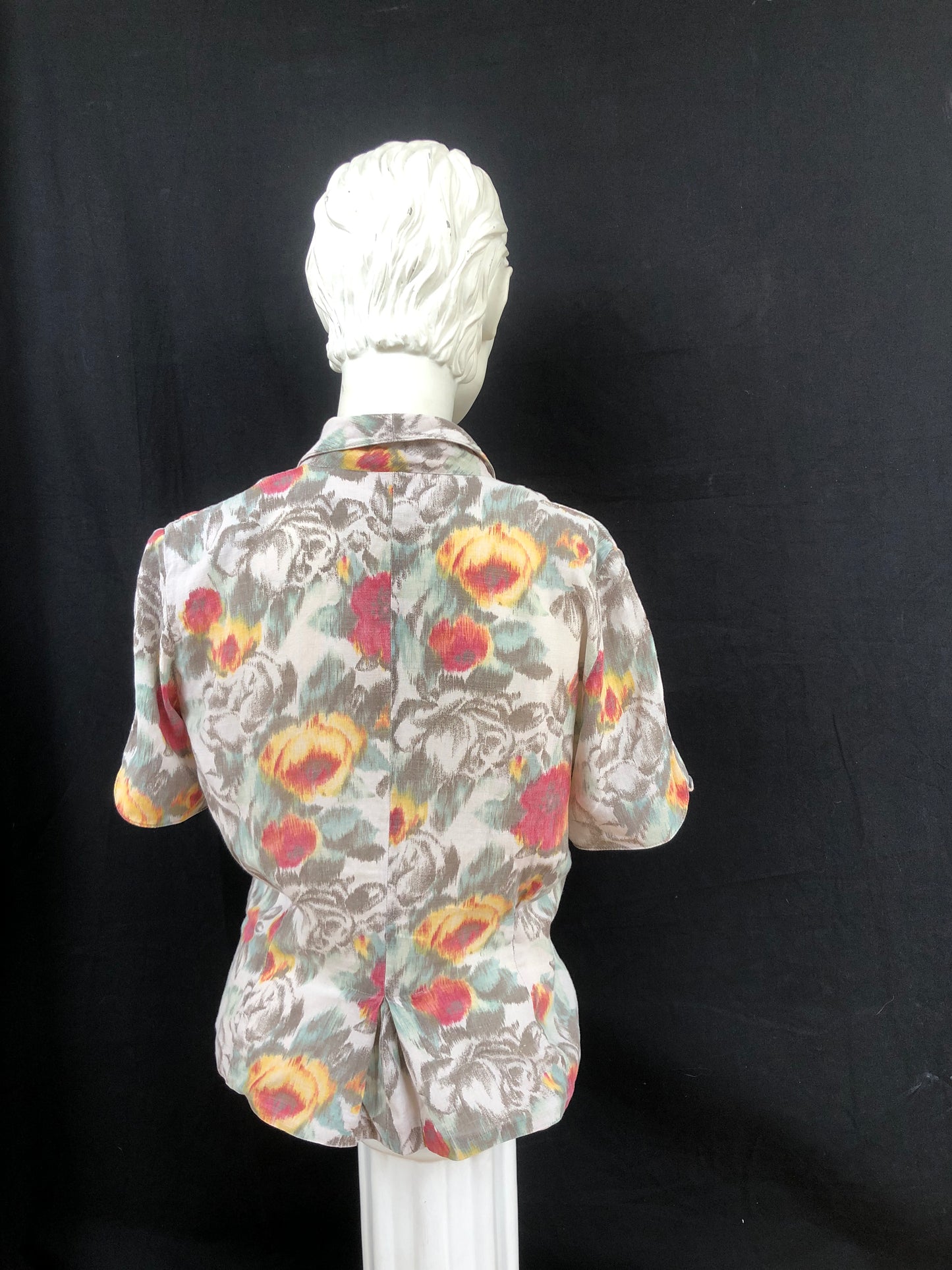 Tissu coton blanc à motifs fleurs rouge jaune vert