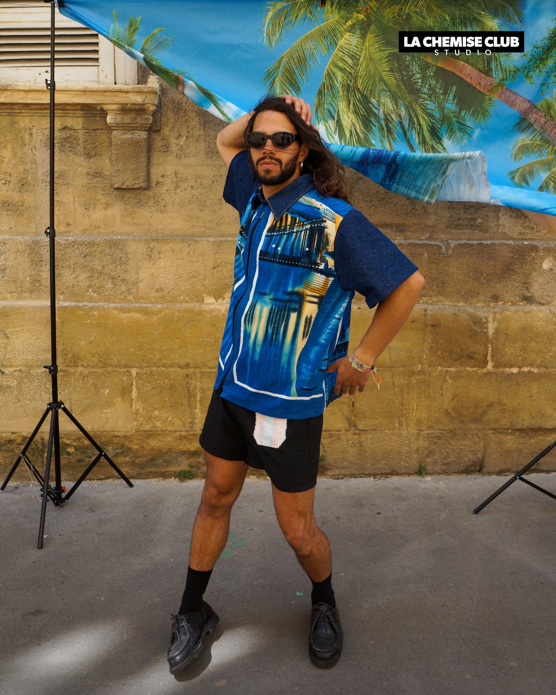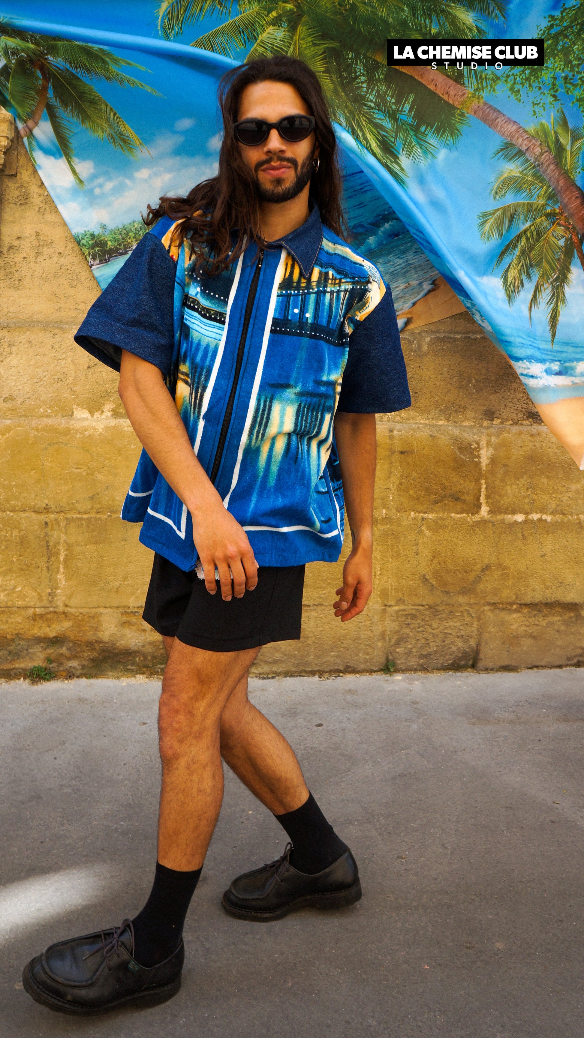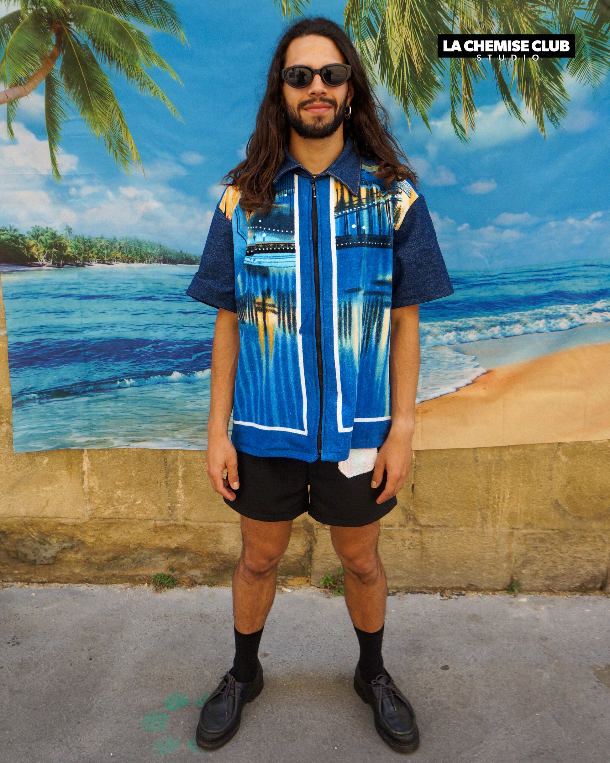 Chemise zippée upcyclée réalisée en collaboration avec Hulala