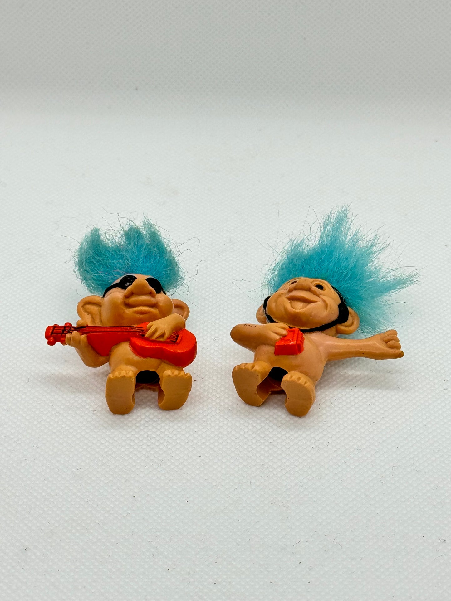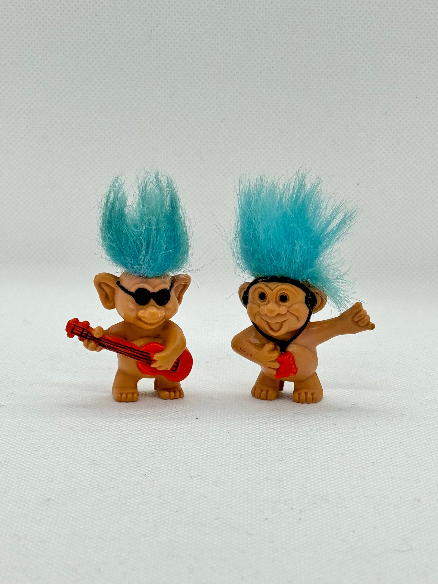 Fixez ces petits trolls mélomanes en haut de vos crayons à papier ou disposez les en déco. Sur le thème musical, l'un d'eux joue de la guitare avec style et l'autre écoute son walkman. Tous les deux arborent une superbe chevelure bleue :-)
