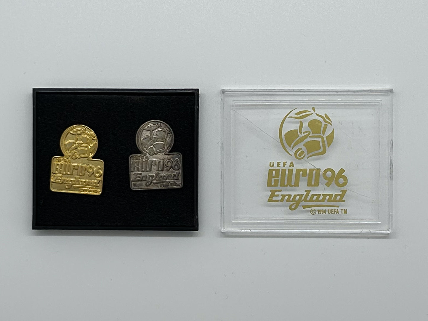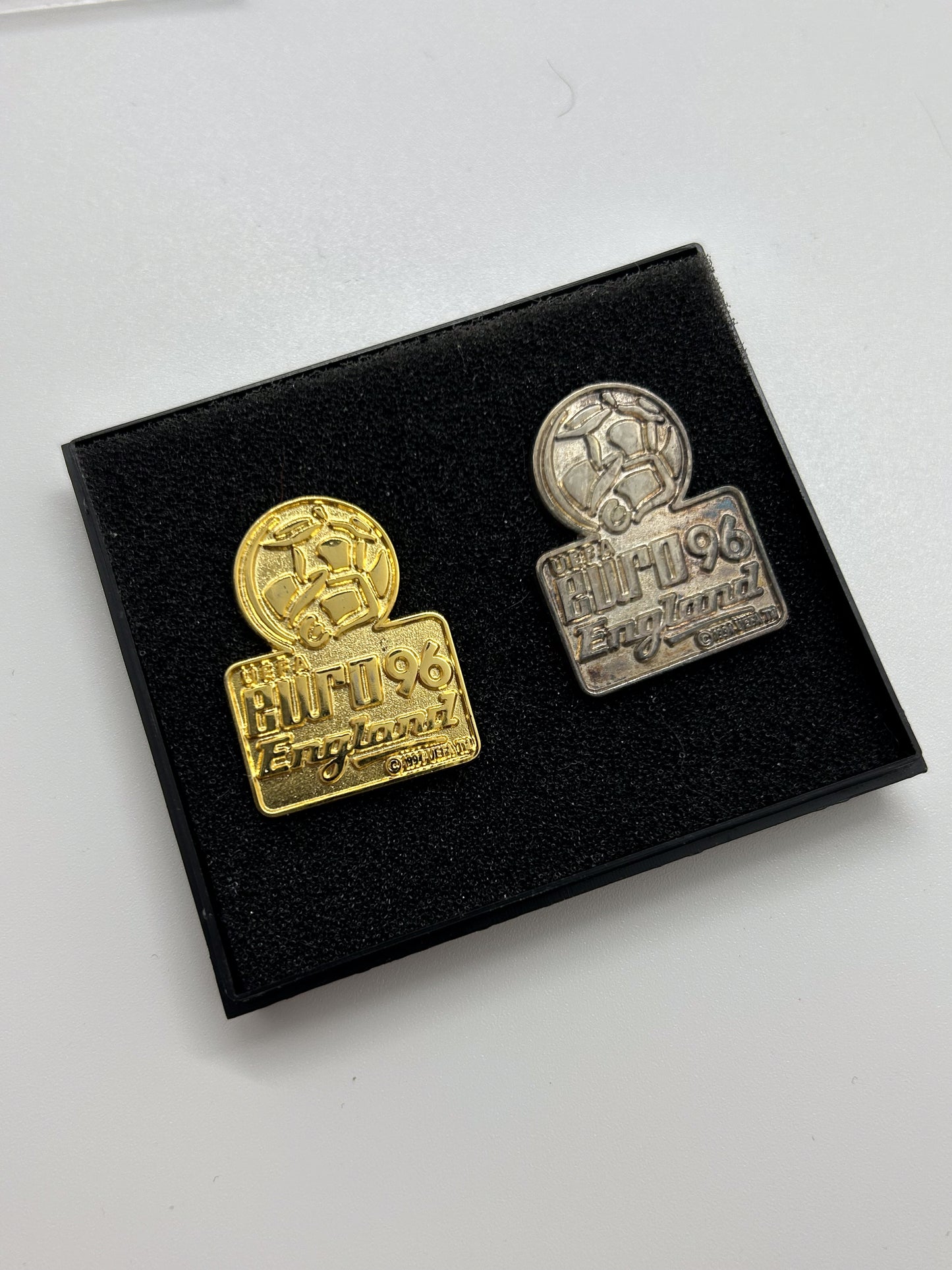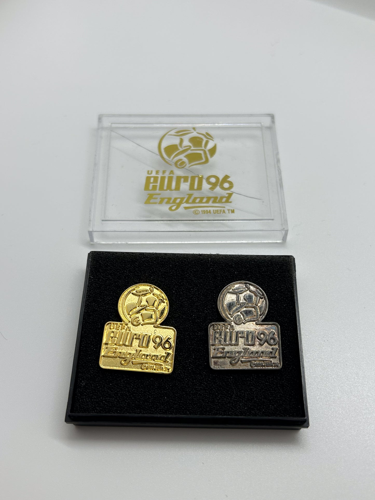 Replongez dans un championnat fort en émotions avec ce lot de 2 pin's, merch officiel de l'Euro 96 England.